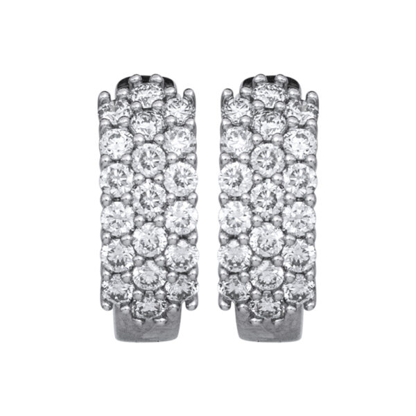 New 14k white gold huggie hoop earrings set with 0.53 carats of lab-grown round brilliant diamonds.