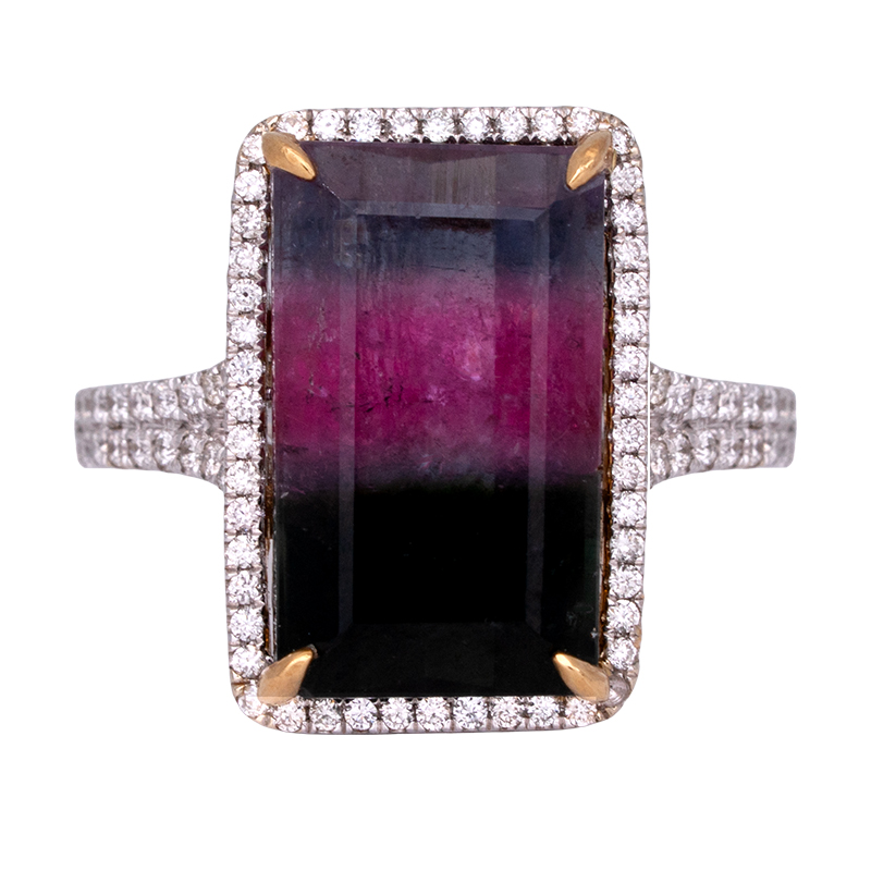 New 10.00 Carats Bi-Color Tourmaline & Diamond Halo Ring