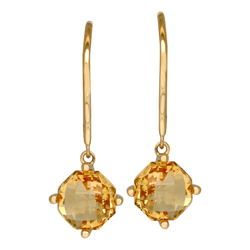New 14k yellow gold drop earrings set with 2.80 carats of octagon citrine.