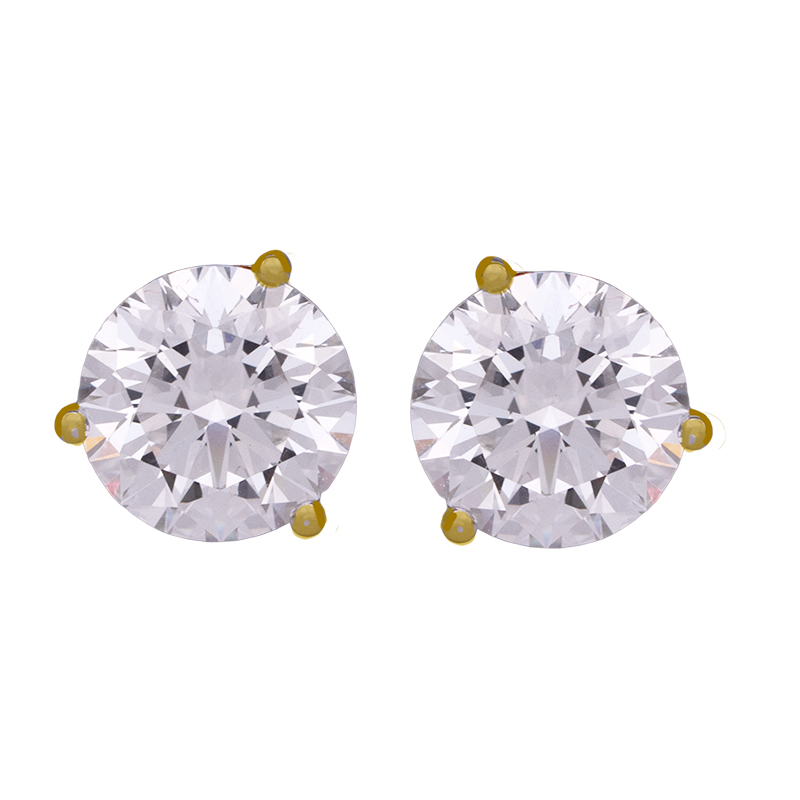 New 14k yellow gold earrings set with 4.05 carats of lab-grown round brilliant diamonds.