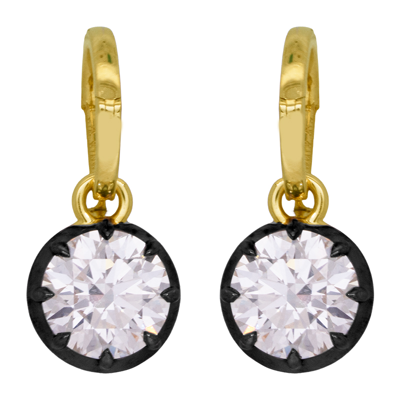 New 14k yellow gold & black rhodium drop earrings set with 4.09 carats of lab-grown round brilliant diamonds.