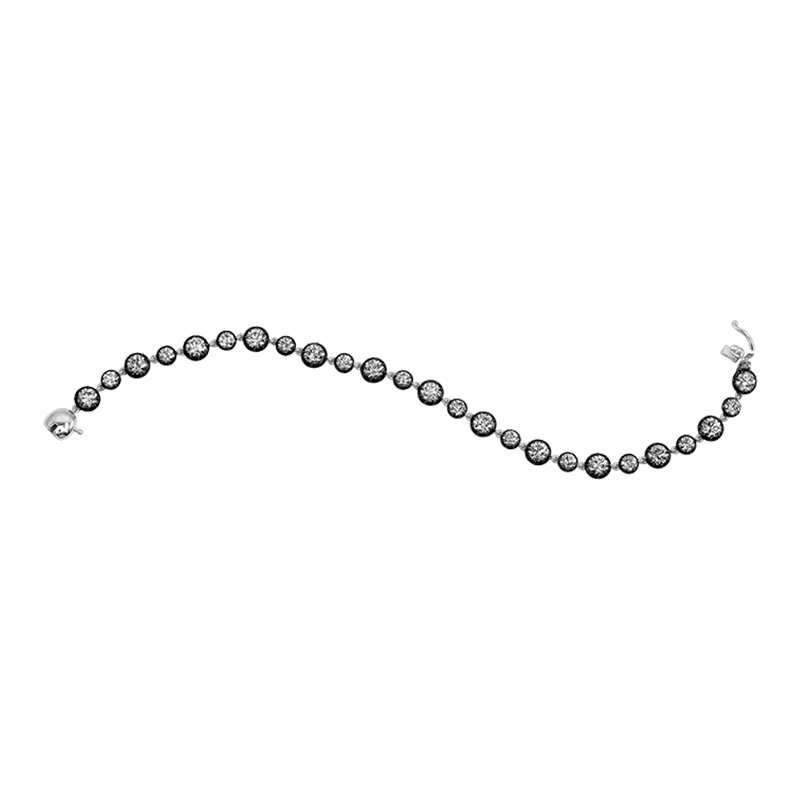 New 14k white gold & black rhodium tennis bracelet set with 6.36 carats of lab-grown round brilliant diamonds.