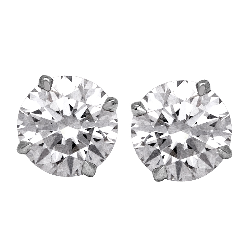 New 14k white gold stud earrings set with 6.52 carats of lab-grown round brilliant diamonds.