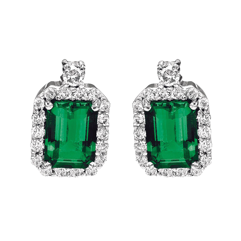 New Chatham 3.20 Carats Lab-Grown Emerald & Diamond Halo Earrings