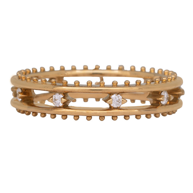 New 18k yellow gold Hearts On Fire Sloane Picot “floating diamond” ring set with 0.15 carats of round brilliant earth-mined diamonds.