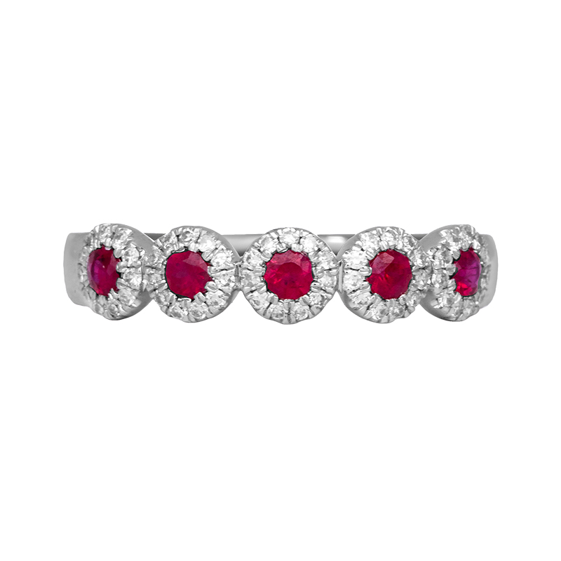 New Venetti 0.46 Carats Ruby & Diamond Halo 5-Stone Band