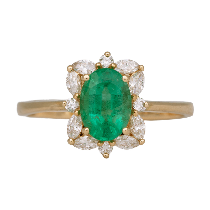 New Venetti 1.23 Carats Emerald & Diamond Halo Ring