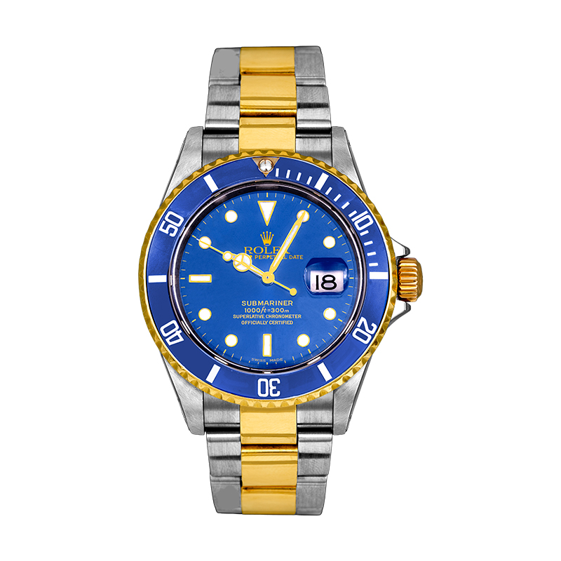 Pre-owned Rolex Submariner watch, 40mm in 18k yellow gold & stainless steel with a blue dial & bezel, Oyster bracelet, folding clasp, and automatic movement with box & papers.