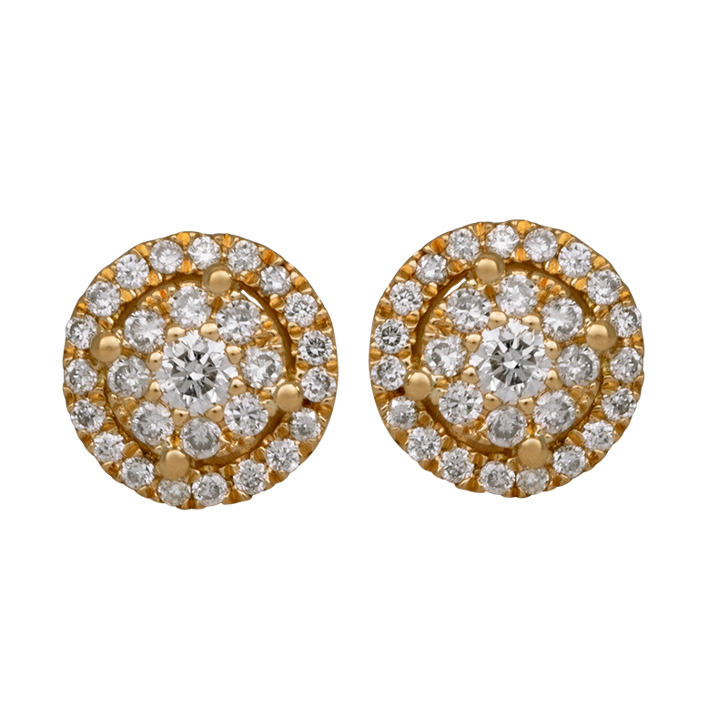 Vintage 18k yellow gold cluster halo stud earrings set with 0.20 carats of round brilliant diamonds.