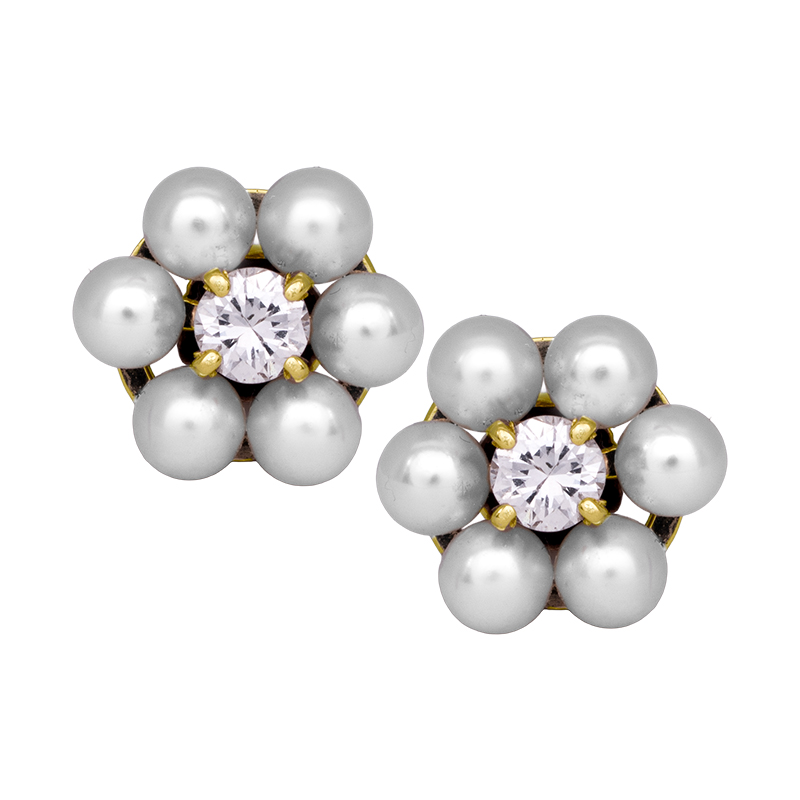 Vintage 0.36 Carats Diamond & Pearl Cluster Earrings