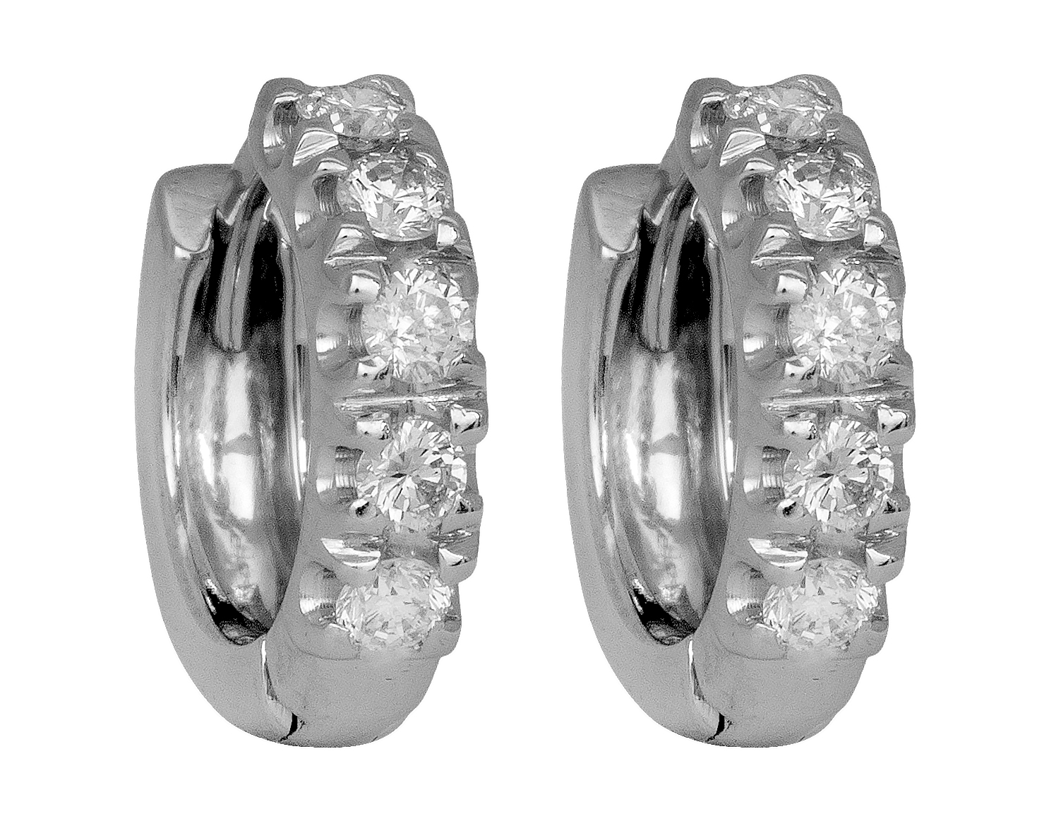 Vintage 18k white gold huggie hoop earrings set with 0.39 carats of round brilliant earth-mined diamonds.