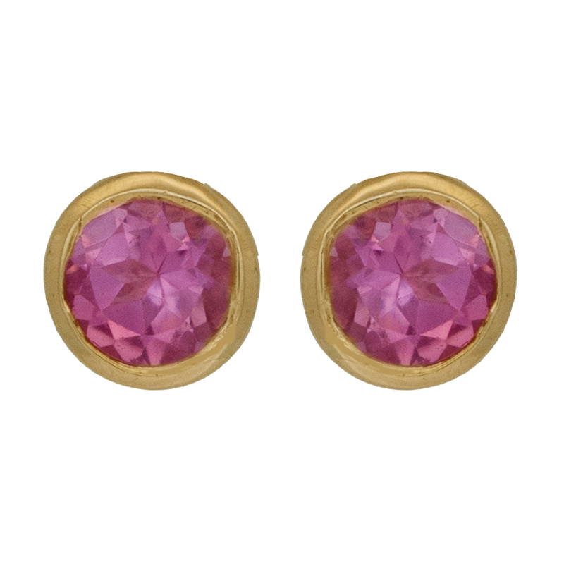 Vintage 14k yellow gold stud earrings set with 0.50 carats of round brilliant pink tourmaline.