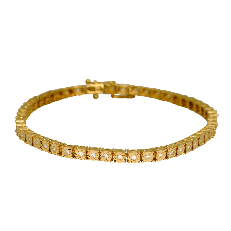 Vintage 14k yellow gold tennis bracelet set with 0.76 carats of round brilliant diamonds.