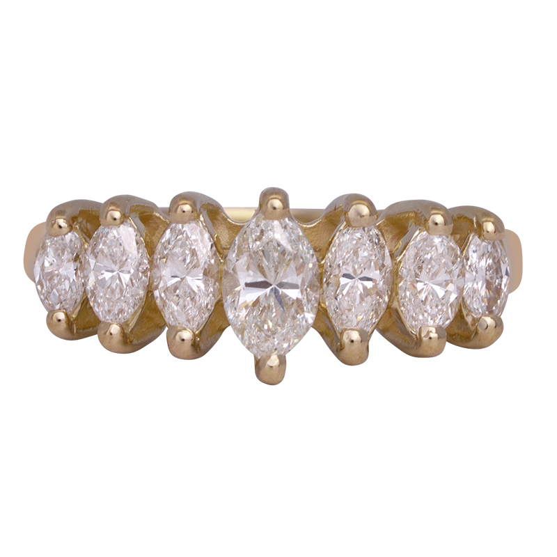 Vintage 14k yellow gold 7-stone band set with 1.00 carat of marquise diamonds.