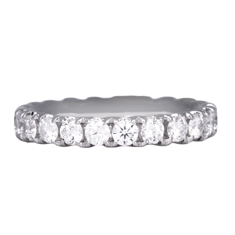 Vintage 18k white gold eternity band set with 1.66 carats of round brilliant diamonds.