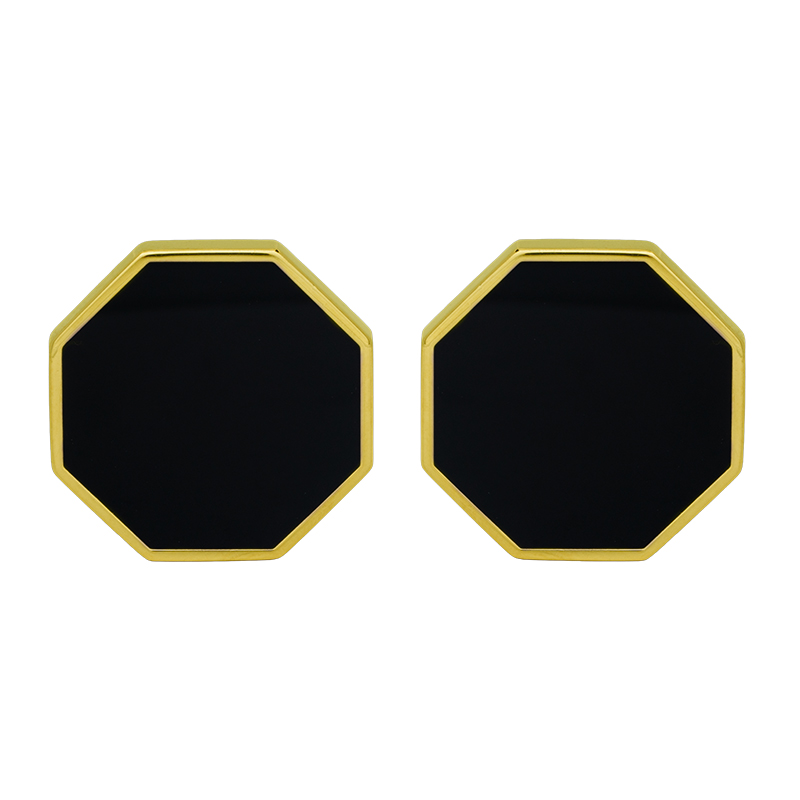 Vintage 14k yellow gold octagon earrings inlaid with onyx.