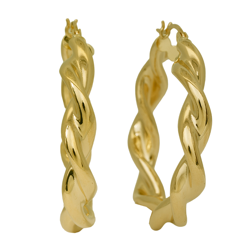 Vintage 14k yellow gold 35mm twisted hoop earrings.
