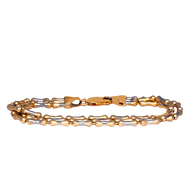 Vintage 14k yellow & white gold fancy bead 3-row bracelet.