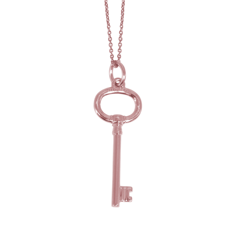 Vintage 18k rose gold Tiffany & Co. oval key pendant.