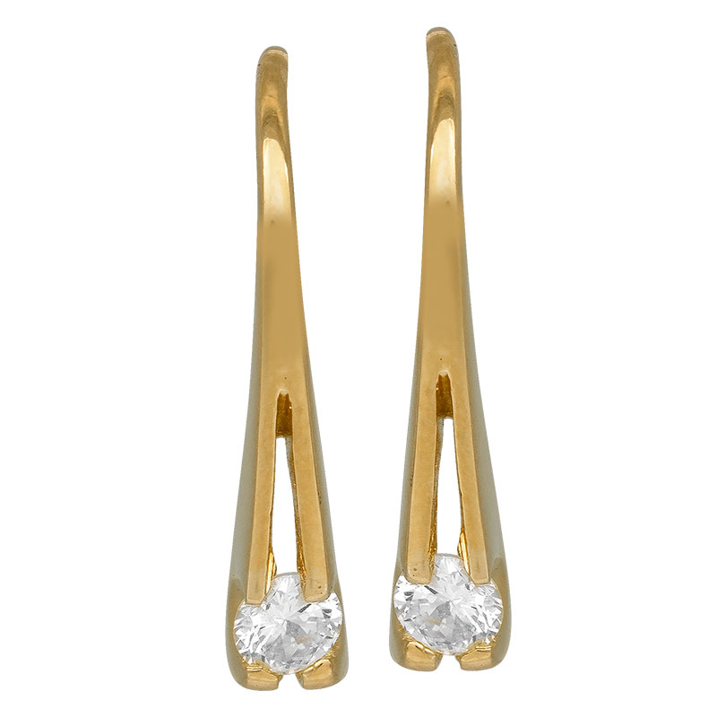 Vintage 18k yellow gold shepherd hook drop earrings set with 0.20 carats of round brilliant diamonds.