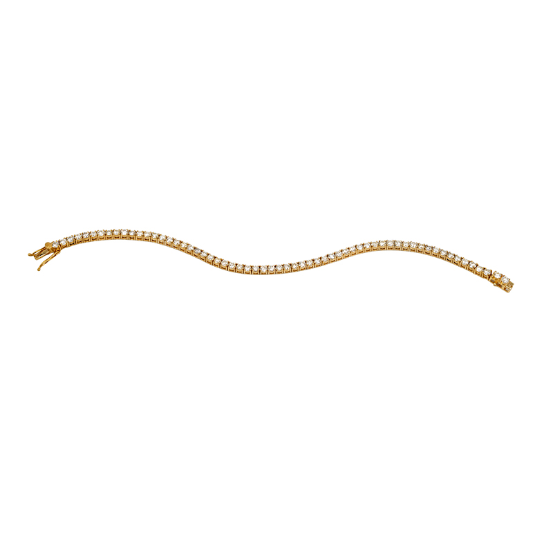 Vintage 14k yellow gold tennis bracelet set with 5.00 carats of round brilliant earth-mined diamonds.