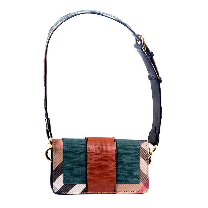 Vintage house check canvas & leather Burberry Bridle Madison Small Buckle shoulder bag with strap.