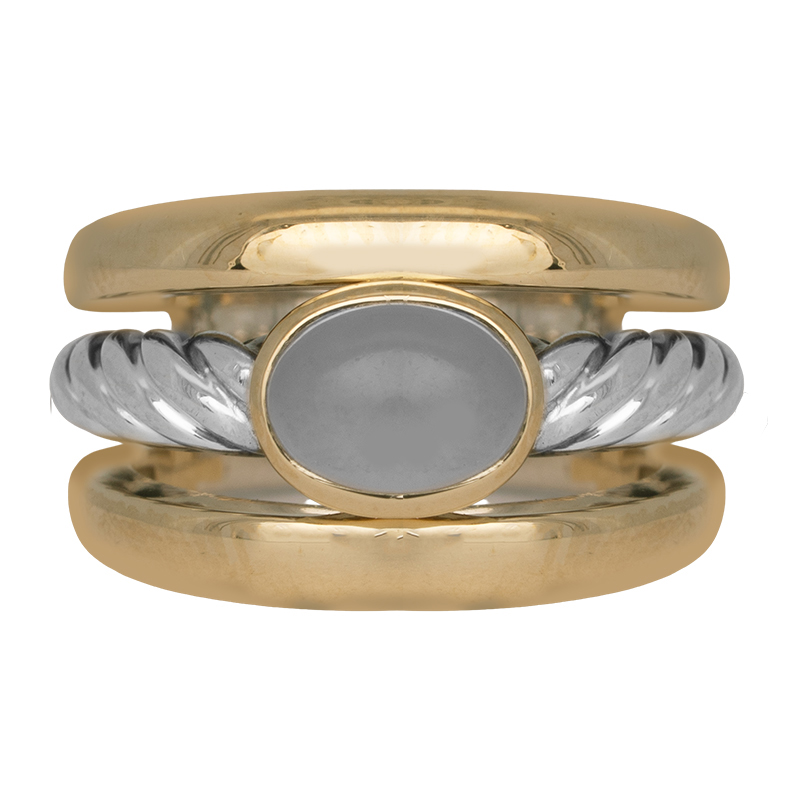Vintage sterling silver & 18k yellow gold David Yurman Classic Cable cigar band set with an oval chalcedony.