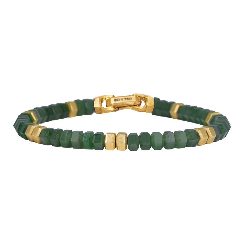 Vintage 18k yellow gold David Yurman Hex Spiritual Bead bracelet set with 6mm hexagon gold & jade beads.