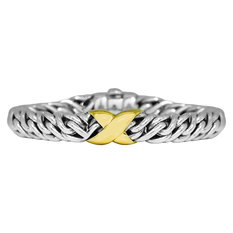 Vintage sterling silver & 18k yellow gold David Yurman Lyrica link X station bracelet.