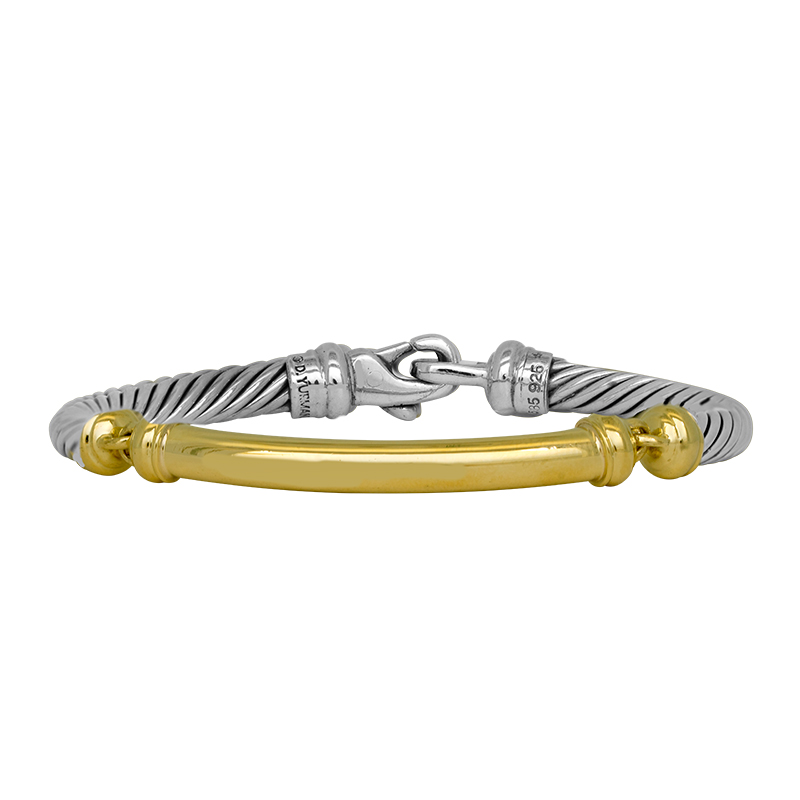 Vintage 14k yellow gold & sterling silver David Yurman Metro cable & curved bar bracelet.