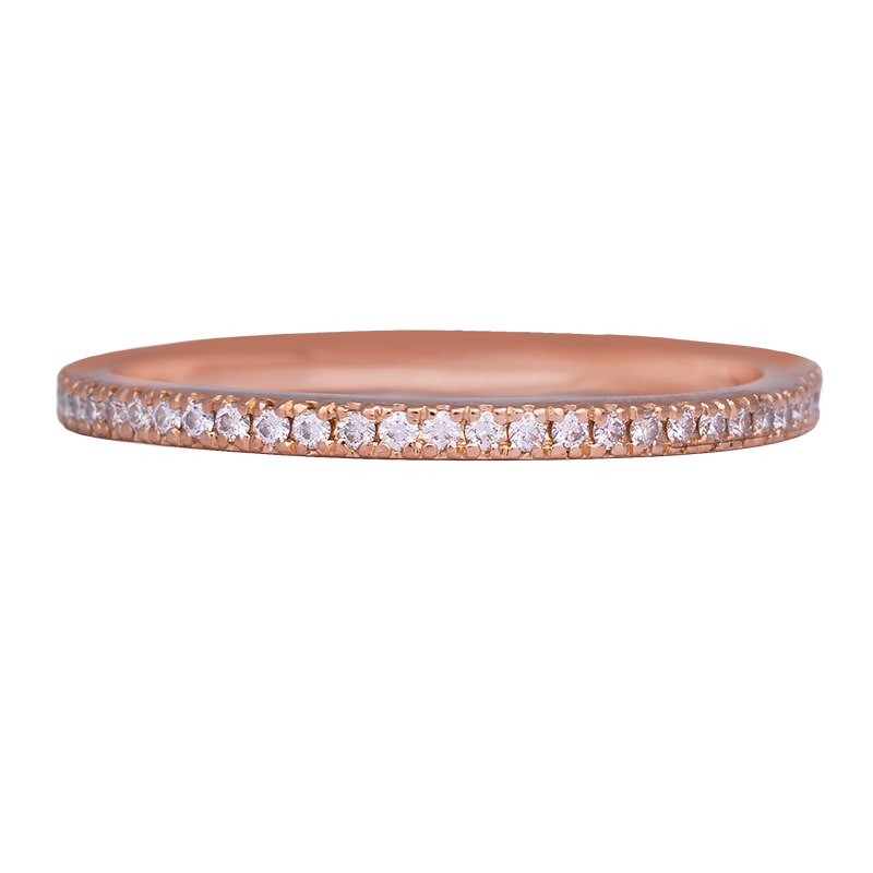 Vintage 18k rose gold Hearts On Fire Classic eternity band set with 0.21 carats of round brilliant diamonds.