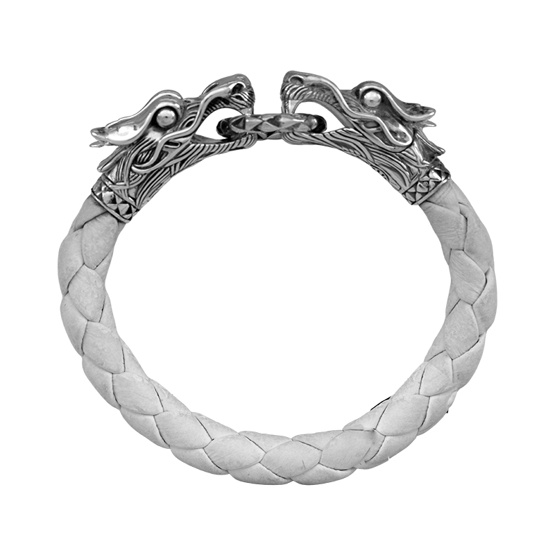 Vintage sterling silver & white woven leather John Hardy Legends Naga dragon bracelet.