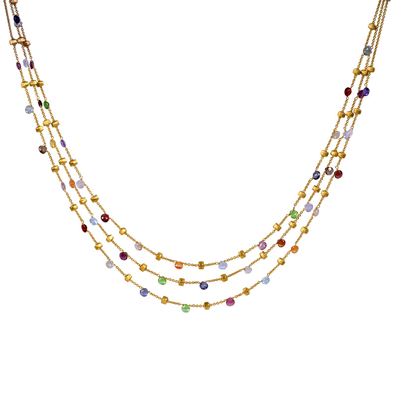 Vintage 18k yellow gold Marco Bicego Confetti 3-strand necklace set with mixed gemstones.