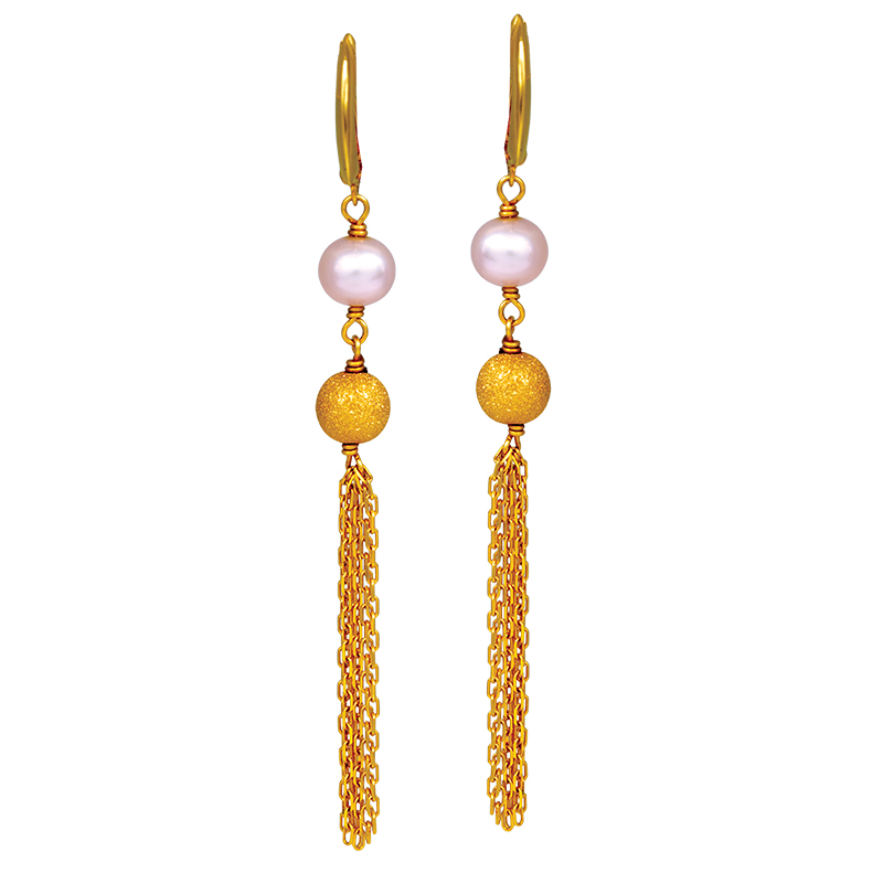 Vintage 14k yellow gold drop earrings set with pink freshwater pearls.