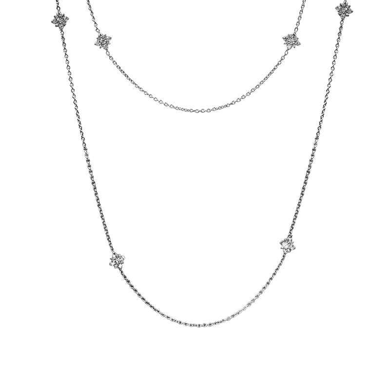 Vintage 18k white gold Roberto Coin flower station necklace set with 2.42 carats of round brilliant diamonds.