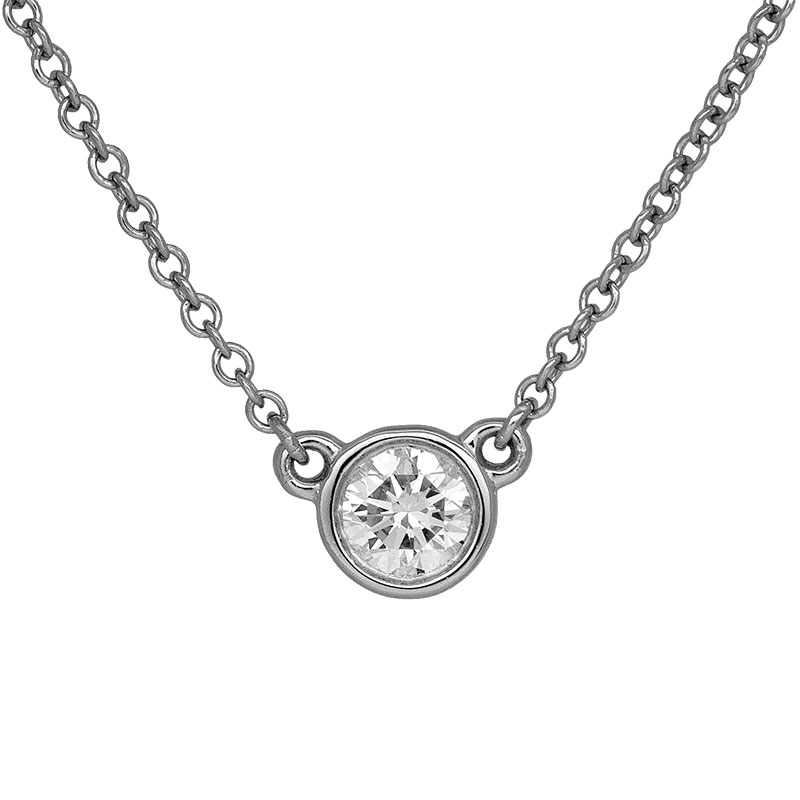 Vintage platinum Tiffany & Co. Elsa Peretti “Diamonds By The Yard” necklace set with a 0.17 carat round brilliant earth-mined diamond.