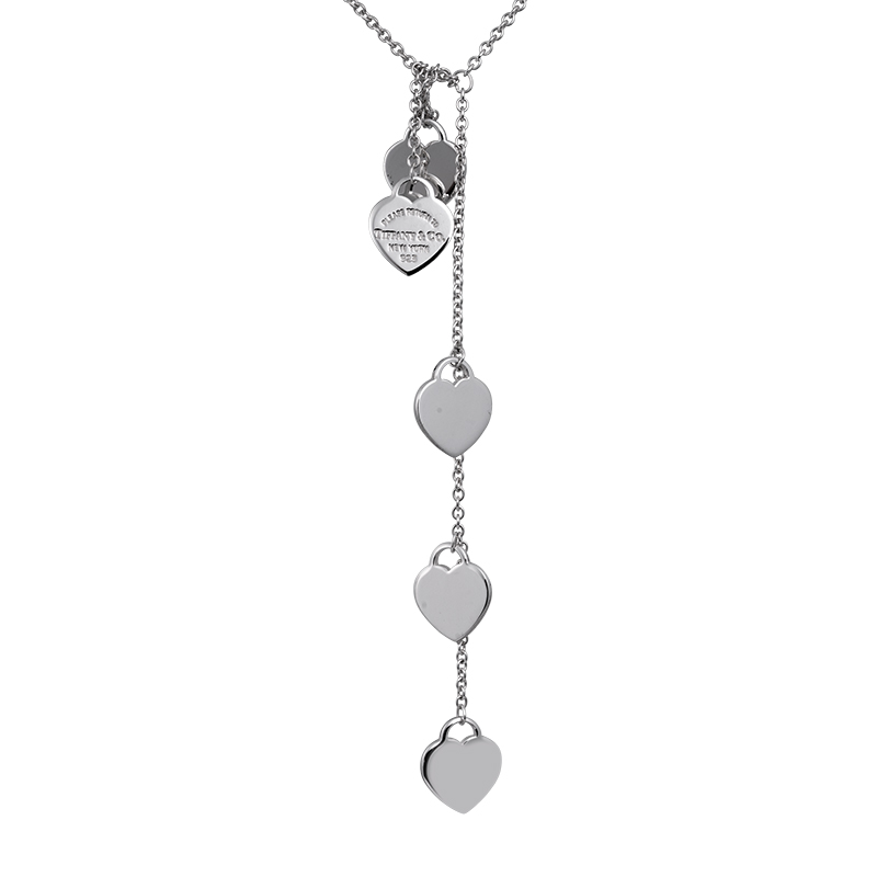 Vintage sterling silver 16″ Tiffany & Co. Please Return To Tiffany mini heart lariat necklace.